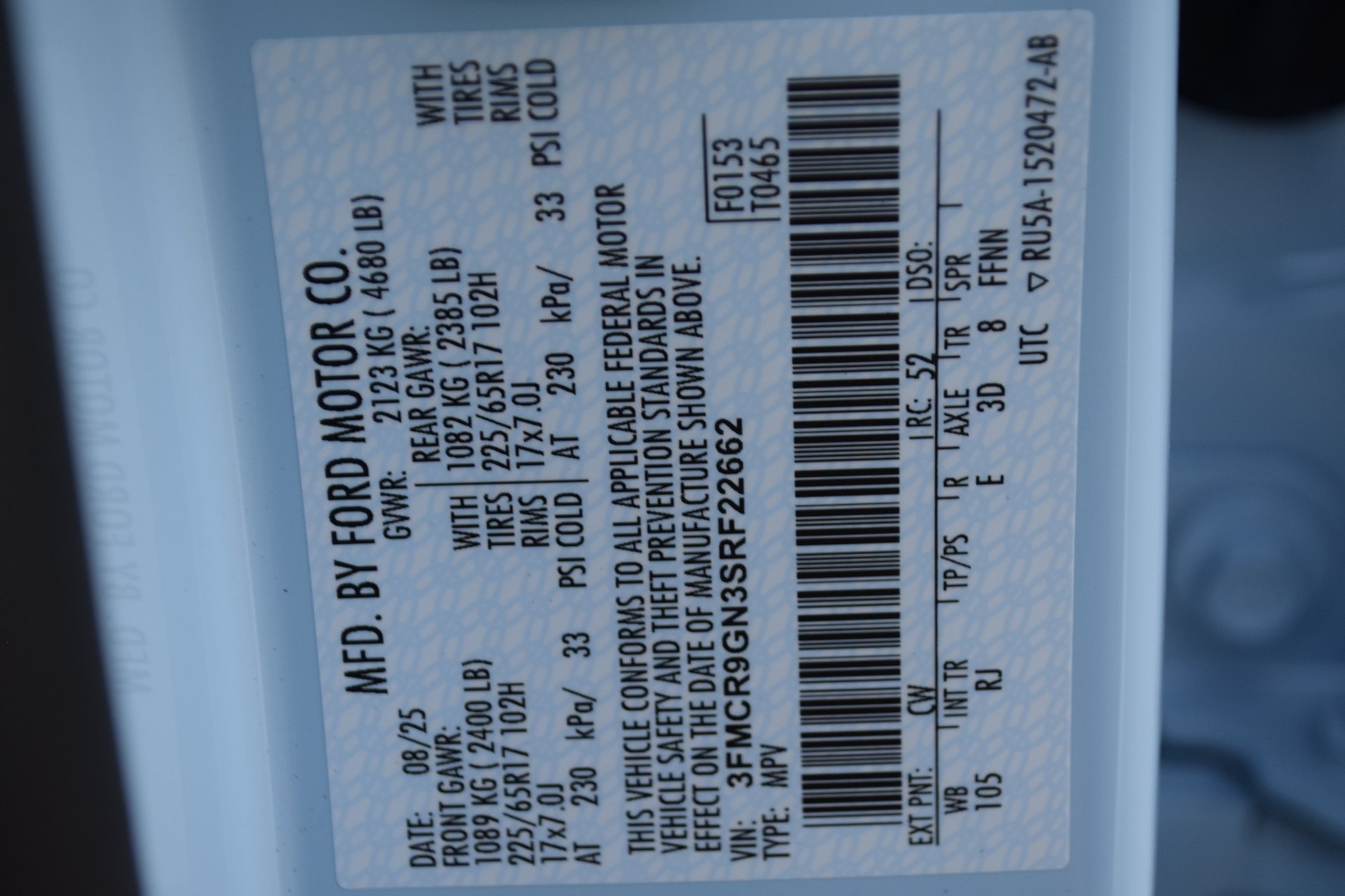 VIN: 3FMCR9GN3SRF22662