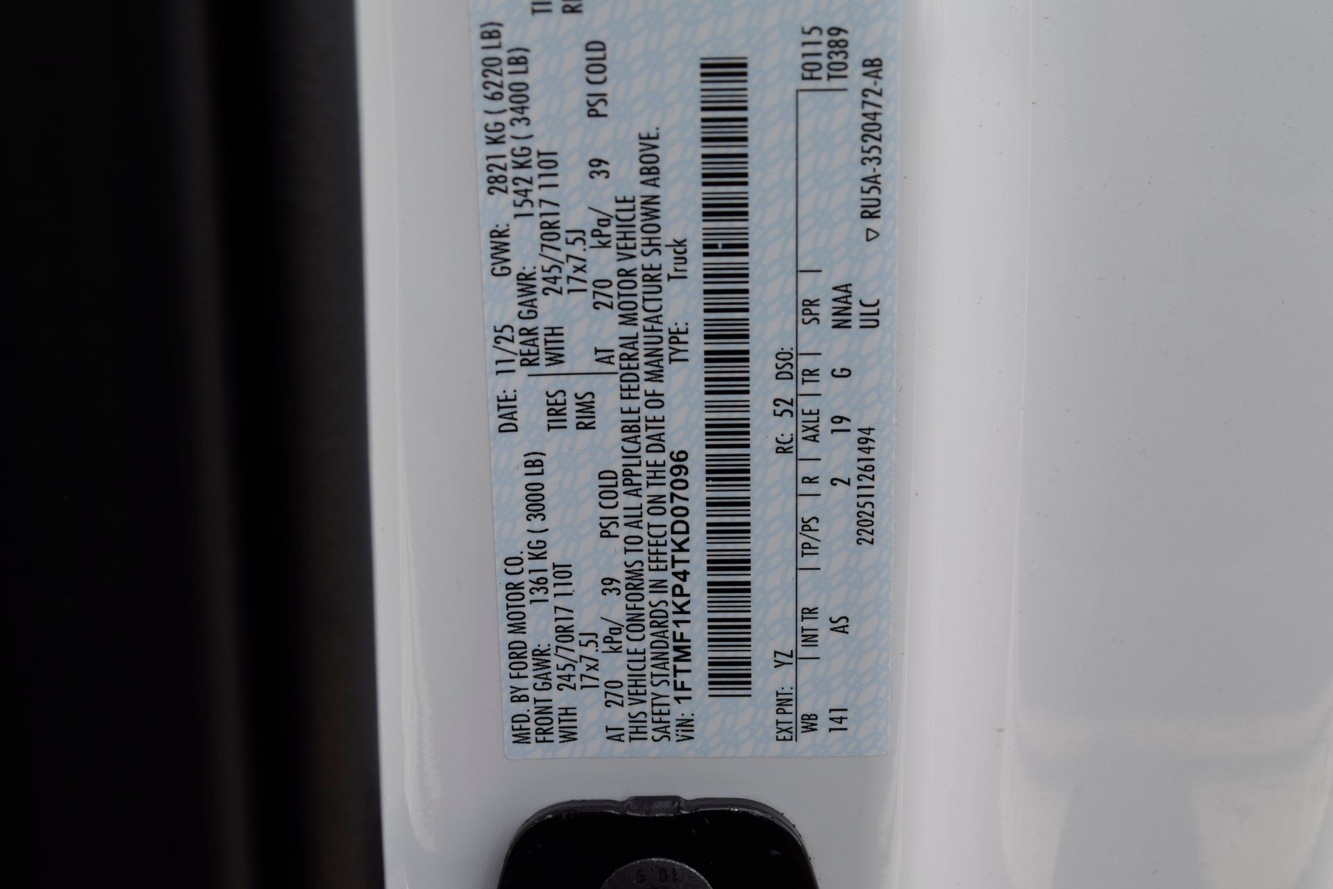 VIN: 1FTMF1KP4TKD07096